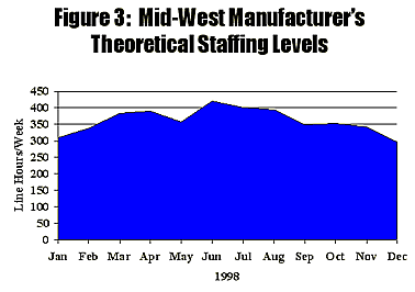 Since most companies want to keep employees for the long term, they try to maintain the same staffing level throughout the year. This makes a situation like the one shown in Figure 3 undesirable. Therefore, variable demand fluctuations are met by varying the coverage with secondary coverage adjustment mechanisms, such as planned overtime, temporary employees, training and other discretionary work management, and planned time-off management. Short-term adjustments include unplanned overtime and using temporary or contract labor.